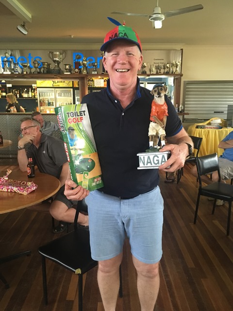 The focus of the day was all about the Jack Jones memorial and with the wind blowing scores would be kept lower than in other years. Mind you not as low as Andy Mac was to produce. Managing to lodge a pitiful 17 points for the round of 18. This was more than enough to take home the ‘dog of a day’ trophy. Macca wasn’t to go away empty handed and was presented with a new ‘toilet golf set’ to practice his putting while on the throne.