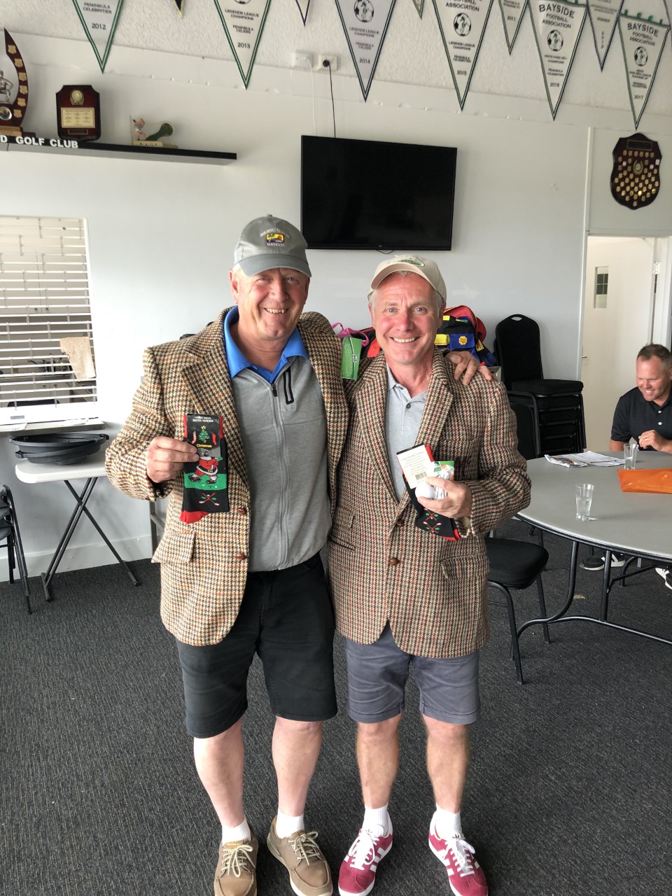 At the other end of the leader board we had perhaps the most contentious ending ever seen in MGC history, filled with bending of the rules, dodgy counting and a count back. What transpired was nothing short of farcical, with a countback needed to separate the short price favourite pairing of Hubba and Billy Mac and the unlucky pairing of Red and Clayton both finishing the day with a net score of 75.25. After some questionable counting carried out by the peanut gallery we call MGC rules officials, the final result showed the pair of Red and Clayton had taken out NAGA honours, which compounded a sorry day for Clayton who had to sacrifice a sock on the 2nd hole due to a call of nature. The validity of the result was further put into question with the revelation that a team had in fact played an illegal ball on the 1st hole and should possibly have been awarded the prize instead (Golf Australia ruling pending).