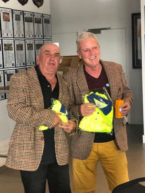 Touted as early favourites to take home NAGA, it was Team 1 of Bob and Billy Mac, who took full advantage of the cooler temperature earlier in the day, who would be clear winners on the day with a Nett score of 68.75, beating second placed Team 3, Girdy and Sammy with 70.25, a surprise as one of the group was seen to forget his clubs on the 10th tee. Not the best result for Billy Mac as he now gets a cut and could well be handicapped out of the Andy Mac Day at Cape Schanck. Although the team captain couldn’t make it back for the presentations, a proxy was needed for the photo, luckily enough Bob’s doppelgänger was available.