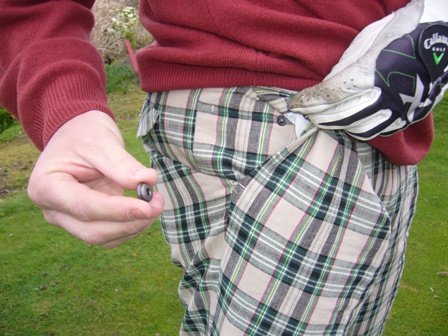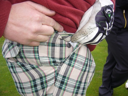 Paul managed to raise the bar in the Spring fashion stakes with the latest trousers from the John Daly label, these strides come with the added feature of a ball marker inside the pocket. Brilliant.